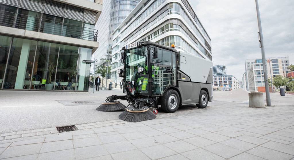 Mit rückenschonenden De-luxe-Komfortsitzen für ermüdungsfreie Arbeitseinsätze. Beidseitiger Ein- und Ausstieg mit großen Schiebefenstern in den Türen. Eco-Taste zum Start des Kehrbetriebs.