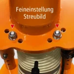 Streubild einstellbarDer Streuteller kann mithilfe zweier Stellschrauben manuell etwas mehr nach links oder rechts ausgerichtet werden. So kann parallel zum Streuen der Fahrbahn das Streugut gezielt auf dem angrenzenden Geh- bzw. Fahrradweg ausgebracht werden.