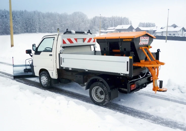 POLARO® M, L und XL sind „Salzstreuer“, die sich auch bestens zum großflächigen und fein dosierten Ausbringen von Splitt, Sand oder Dünger eignen. Ein Fahrzeug mit Hydraulikantrieb oder Gelenkwelle ist hierfür nicht nötig. Der Streuer wird einfach auf ein Fahrzeug mit Ladepritsche, 12 V-Anschluss und ausreichend Traglast montiert und los geht’s. Der POLARO® M eignet sich aufgrund seiner Abmessungen auch besonders gut zur Montage auf z. B. Kehrmaschinen.