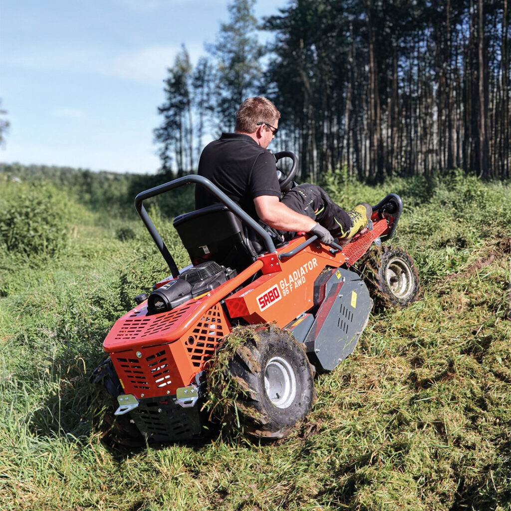 Der Gladiator 95 F AWD wurde speziell für die extremsten Herausforderungen bei der Arbeit in Gestrüpp und hohem Gras entwickelt. Der Fahrer sitzt in einem bequemen, ergonomischen, Sitz. Damit sind Sie bestens ausgerüstet, um auch in steilen Hanglagen sicher zu arbeiten.